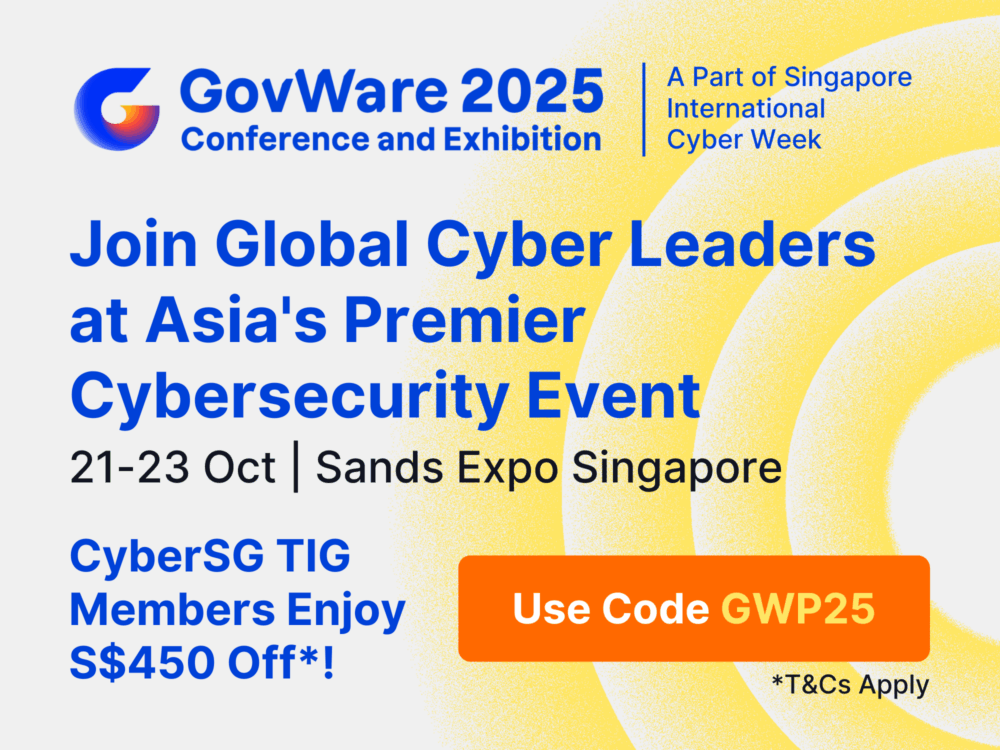 The CyberSG TIG Collaboration Centre members and ecosystem partners enjoy S$450 off the Conference Pass standard rate with promo code “GWP25”, valid through 13 October 2025 (2359hrs, GMT+8).